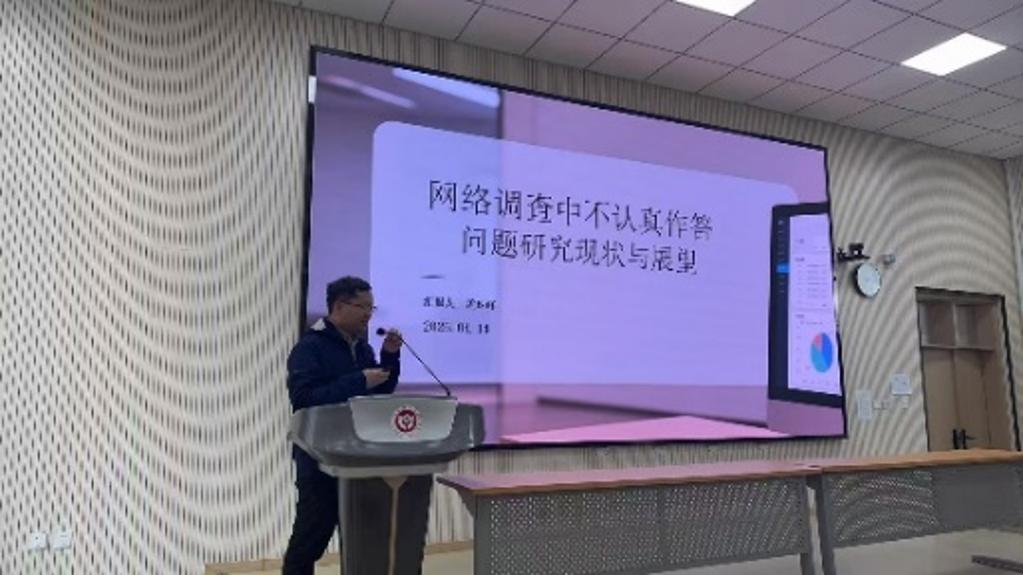 孟珠峰老师作了题为《网络调查中不认真作答问题研究进展》的报告,聚焦网络调查数据质量及不认真作答问题。他提到,数据质量控制应在数据产生过程中介入,而非事后弥补,并指出受访者不认真作答是网络调查中影响数据质量的关键因素。随后,他系统介绍了不认真作答的定义、识别方法以及影响因素。最后他提出了差异化激励机制、多源数据融合识别等未来改进方向。