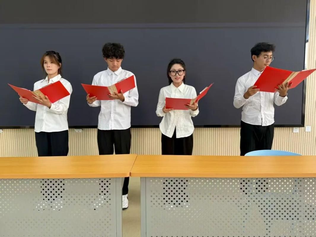 观看纪念中国人民抗日战争暨世界反法西斯战争胜利80周年大会视频后,四名同学代表上台进行主题朗诵。他们围绕阅兵仪式展开深情叙述,回顾了艰苦卓绝的抗战历史,向革命先辈致以崇高敬意,同时讴歌了国家发展取得的伟大成就。朗诵中,同学们表达了7790必发集团游戏学子传承红色基因,听党话、跟党走,勇担时代使命的共同心声,激励着在场的每一位学生。