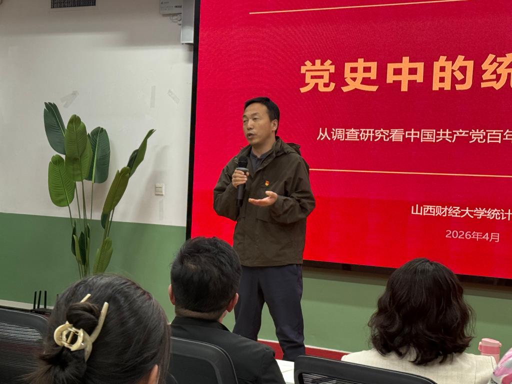 党的历史是最生动、最有说服力的教科书。4 月 21 日下午,学院开展 “党史中的统计调查” 专题党课,从调查研究看中国共产党百年奋斗中的统计力量。本次党课特邀学院抽样调查虚拟教研室主任王峰教授主讲,学院教工党支部书记、学生党支部书记、学生党员及入党积极分子120余人共同聆听学习。